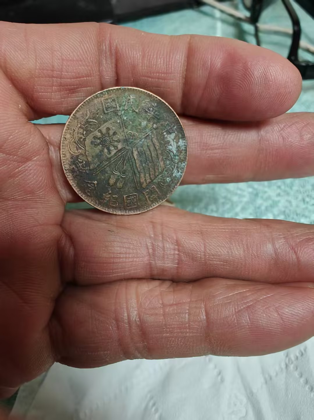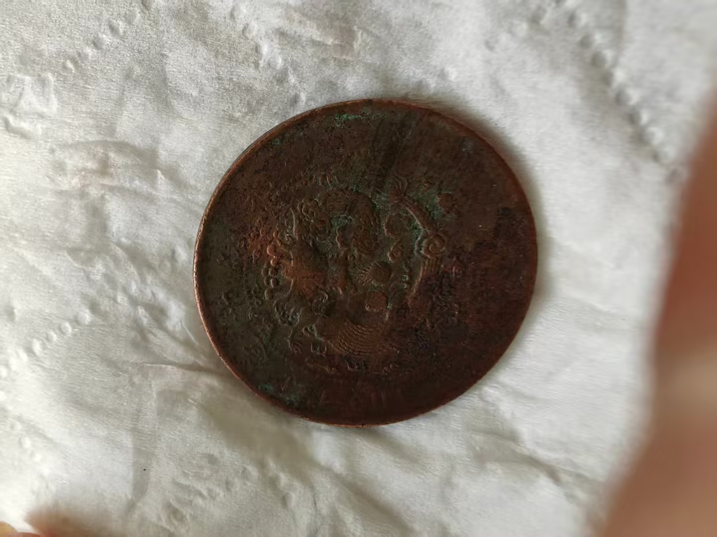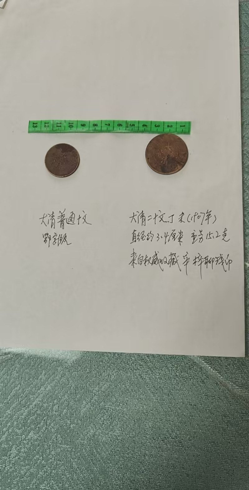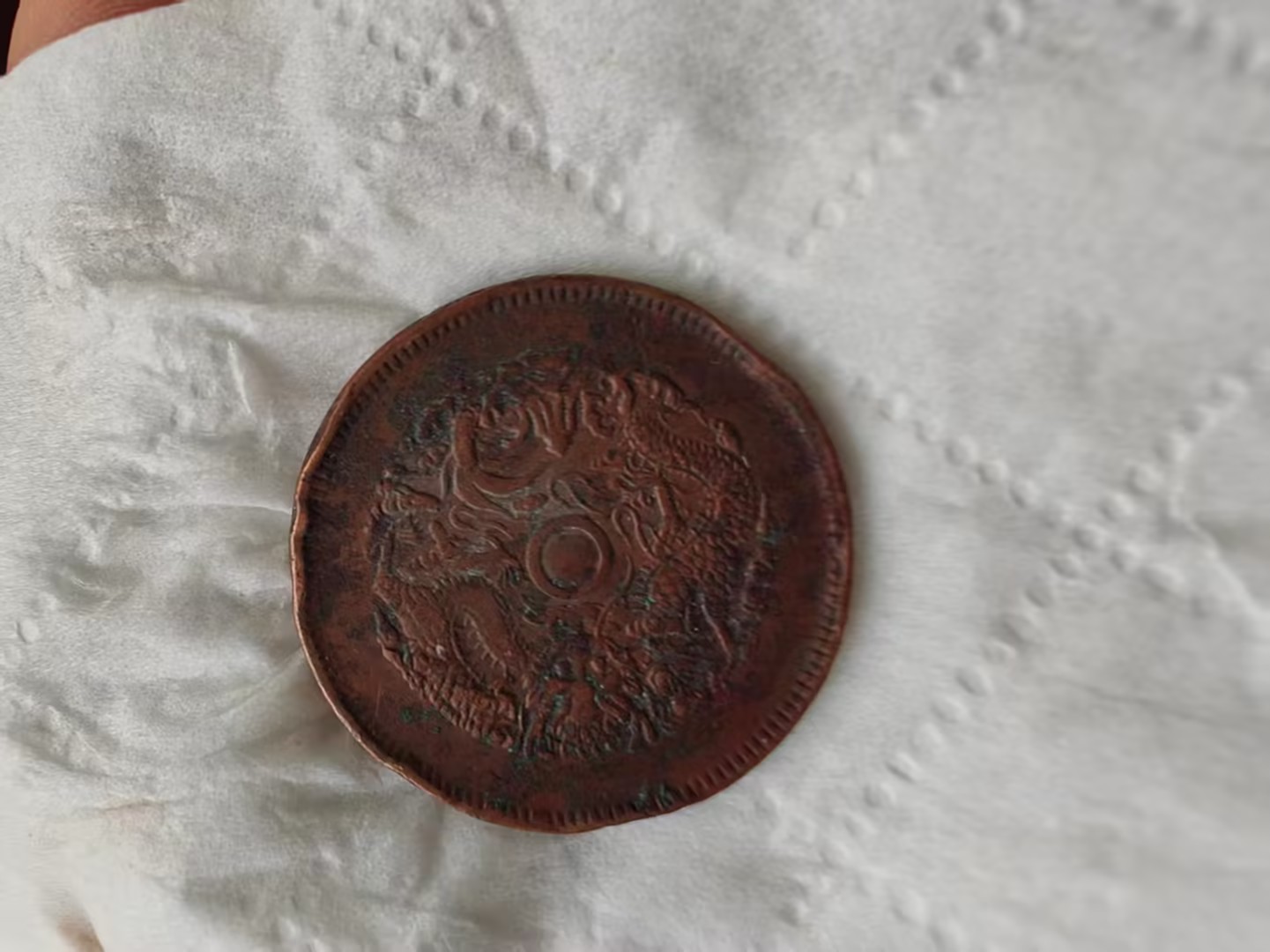 下方标注的 “二十文 丁未年” 字样,明确了它的面值与铸造年份,是晚清货币体系的实物见证,也承载着清末民初的流通记忆